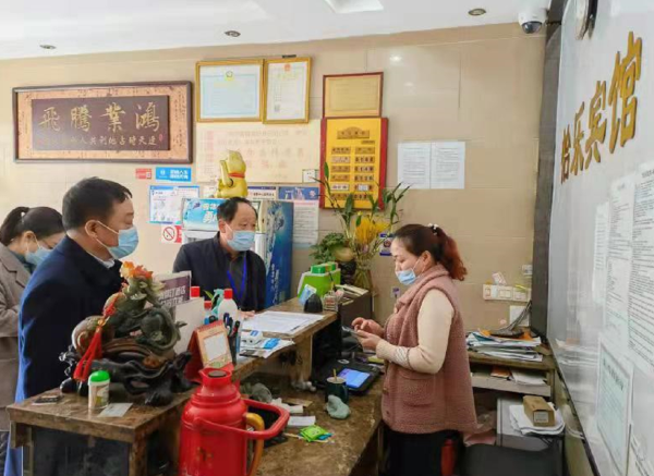▲常州市纪委监委派驻市商务局纪检监察组现场督查钟楼区宾馆和加油站疫情防控工作。