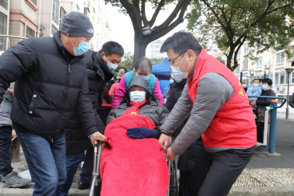 ▲常州市纪委监委组织志愿者下沉防疫一线,配合医护人员、社区工作者有序推进相关人员信息统计、引导核酸检测、核酸送样以及封控区居民的物资后勤保障等工作。