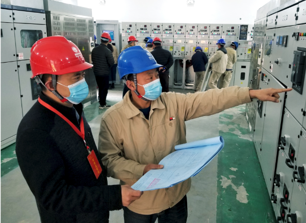 ▲新沂市纪检监察干部在小区现场督查电气工程验收情况,确保疫情期间居民正常用电。