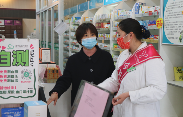 ▲泰州市纪检监察干部在乡镇药店就疫情防控措施落实情况进行督查。