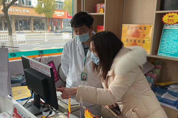 ▲相城区渭塘镇纪委干部到药店监督检查防疫“四类”销售药品管控情况、进店人员信息登记情况等。