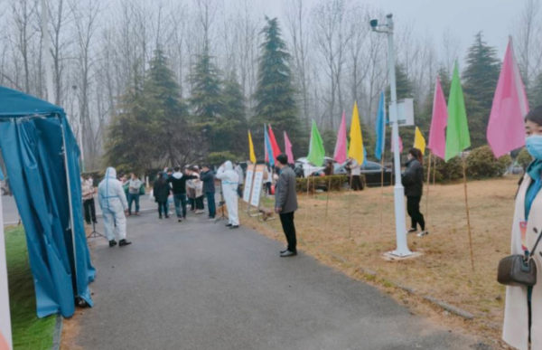 ▲句容市纪委监委工作人员在茅山风景区全员核酸检测现场,协助秩序维护、流程引导、检查健康码和行程码等工作。