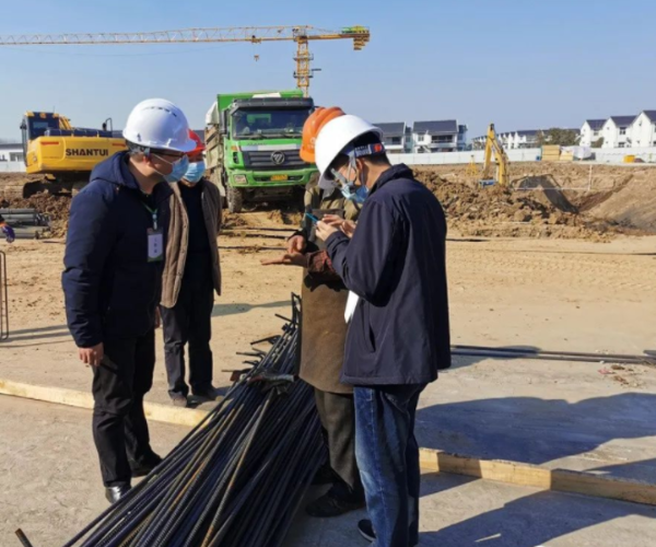 ▲仪征市纪委监委组织12个常态化督查组,实现督查工作每天园镇全覆盖。图为督查组人员深入工地对疫情防控工作进行督导检查。