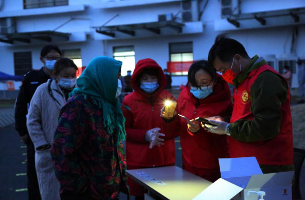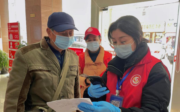 ▲镇江市纪委监委机关党员主动深入社区一线,为居民登记防疫信息,讲解防疫政策。