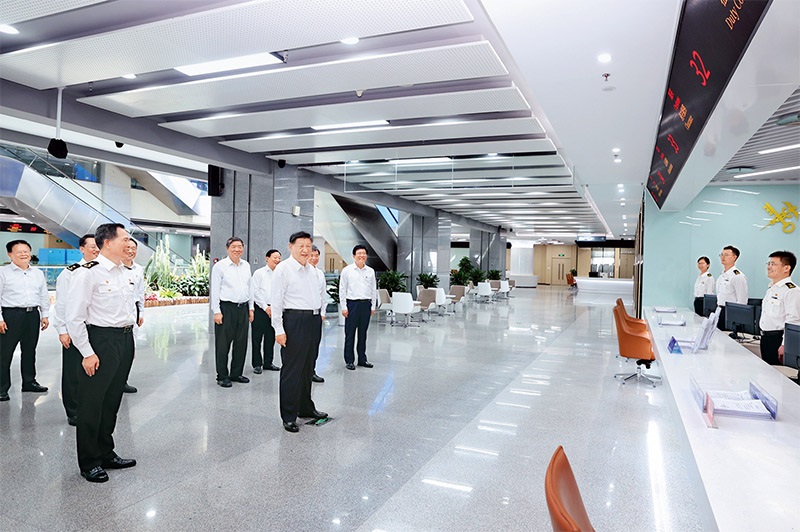 2024年10月15日至16日,中共中央总书记、国家主席、中央军委主席习近平在福建考察。这是16日上午,习近平在中国(福建)自由贸易试验区厦门片区考察时,同综合服务大厅窗口工作人员亲切交流。新华社记者 鞠鹏 摄