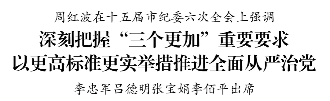 周红波在十五届市纪委六次全会上强调 深刻把握“三个更加”重要要求 以更高标准更实举措推进全面从严治党