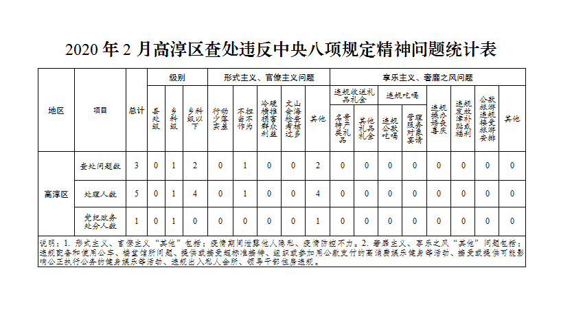 2020年2月高淳区查处违反中央八项规定精神问题3起