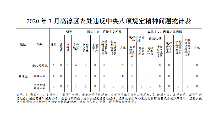 2020年3月高淳区查处违反中央八项规定精神问题5起