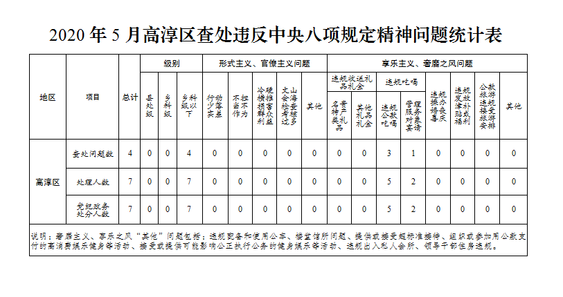2020年5月高淳区查处违反中央八项规定精神问题4起