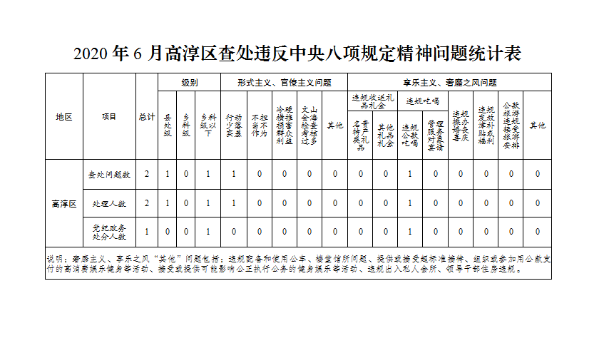 2020年6月高淳区查处违反中央八项规定精神问题2起