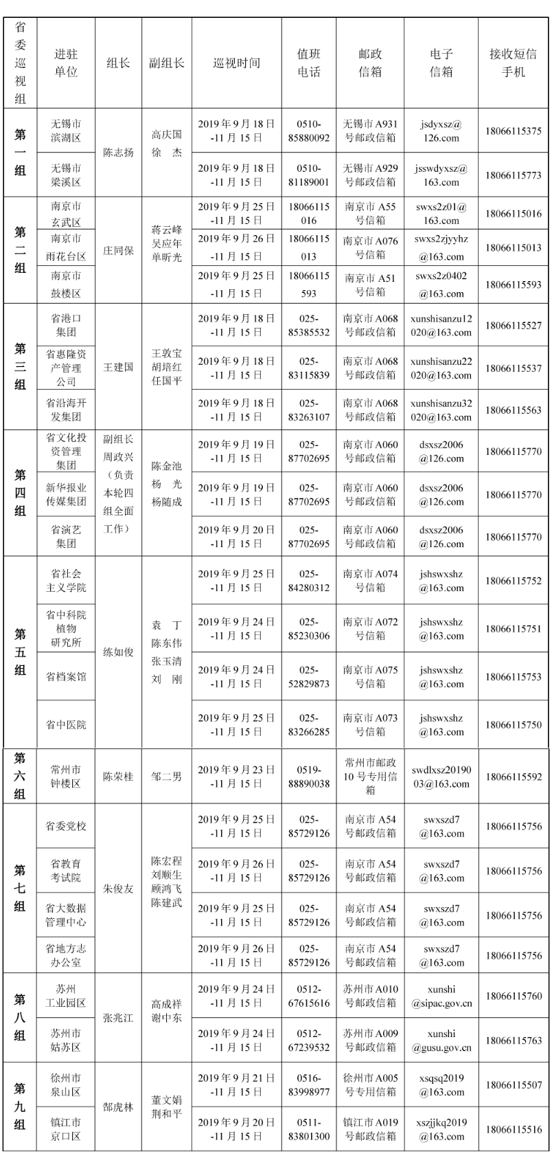 十三届江苏省委第七轮巡视完成第二批进驻
