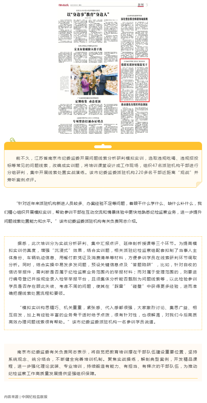 中国纪检监察报报道:南京开展“沉浸式”教学活动 模拟实训补短板促实干