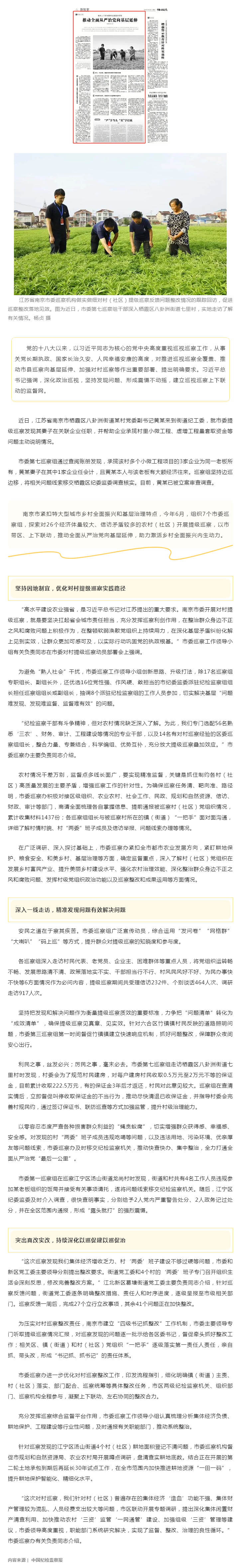 中国纪检监察报刊稿:南京上下联动提级巡察重点村居 推动全面从严治党向基层延伸