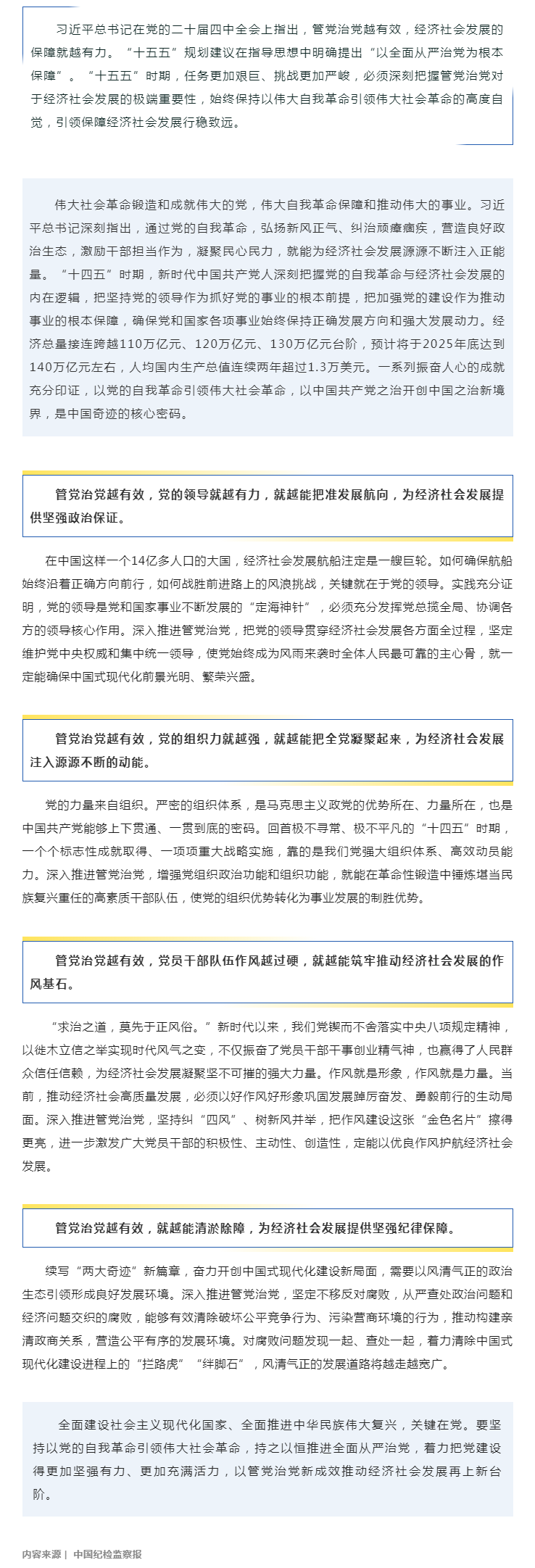 管党治党越有效 经济社会发展的保障就越有力