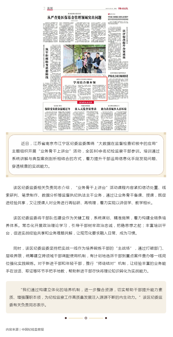 中国纪检监察报刊稿:南京江宁区抓实干部培训 学用结合强本领