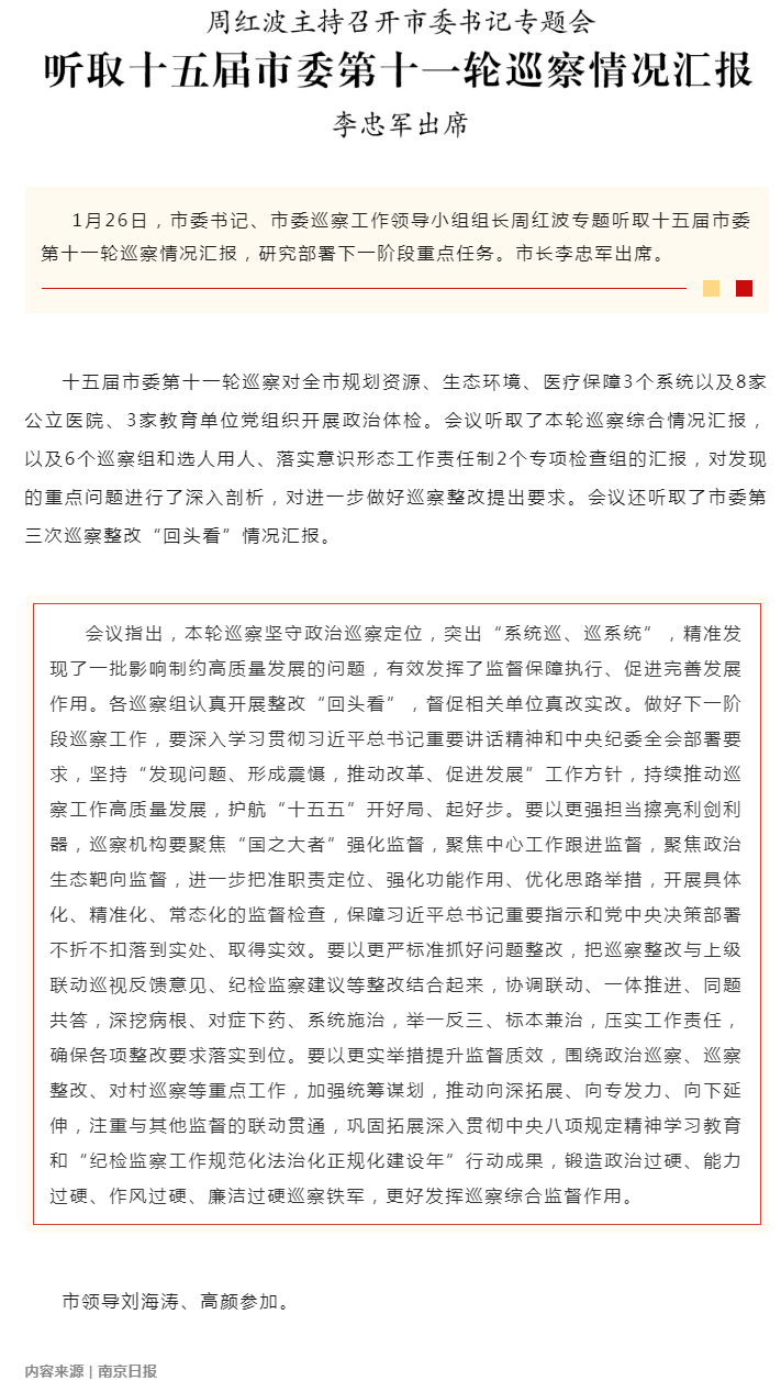 周红波主持召开市委书记专题会 听取十五届市委第十一轮巡察情况汇报