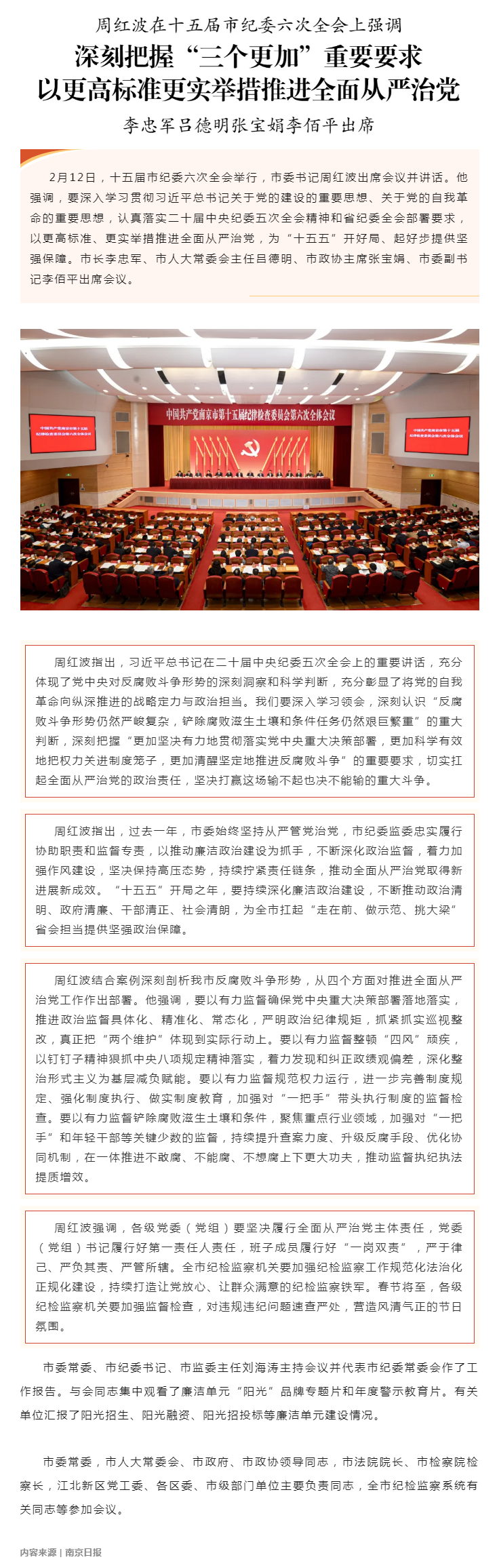 十五届市纪委六次全会举行 深刻把握“三个更加”重要要求 以更高标准更实举措推进全面从严治党