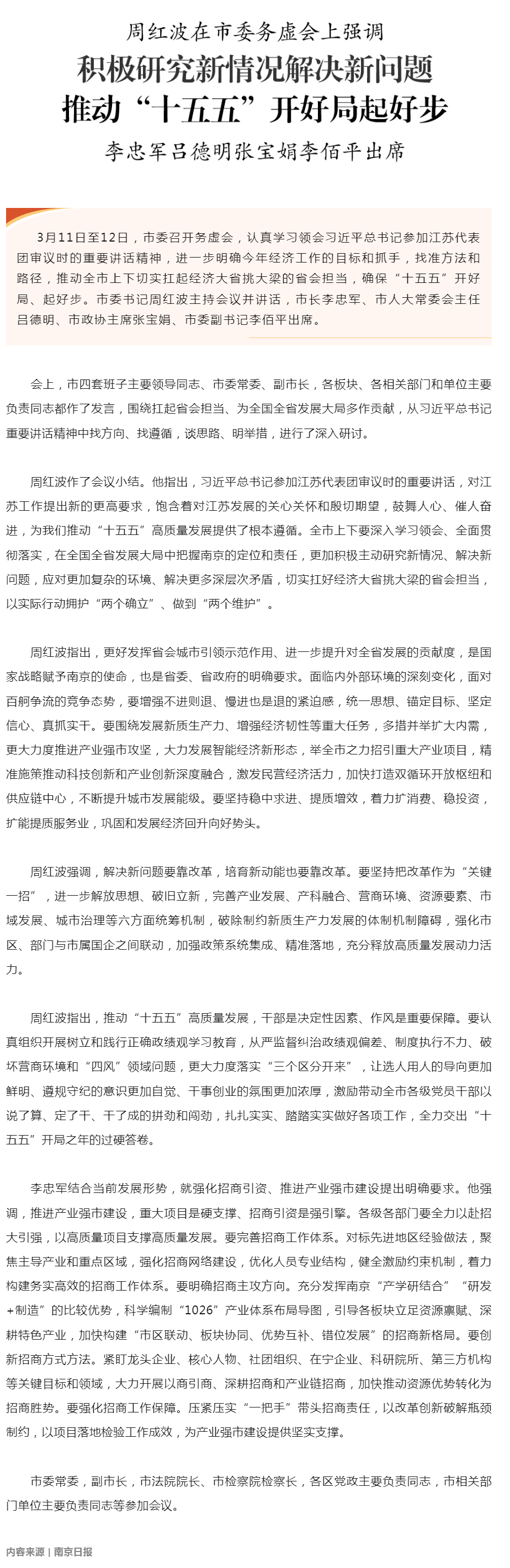 市委召开务虚会 积极研究新情况解决新问题 推动“十五五”开好局起好步