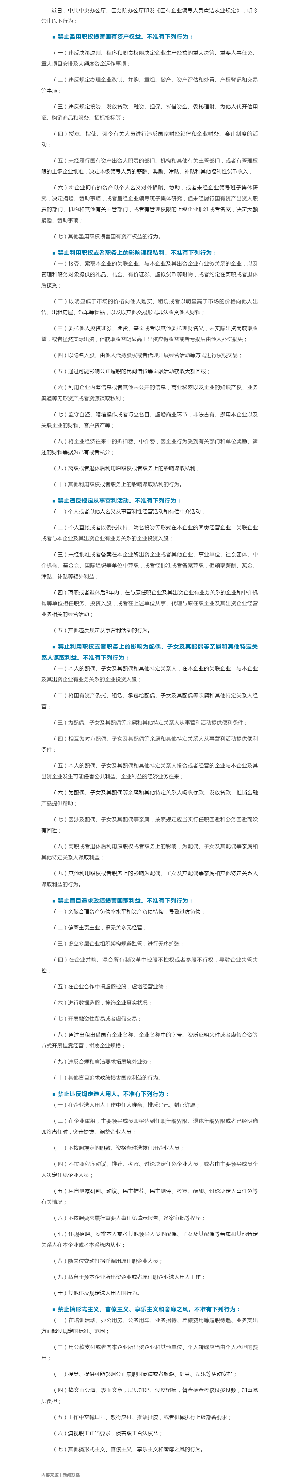 禁止58种行为!中办国办发文规范国企领导人员廉洁从业