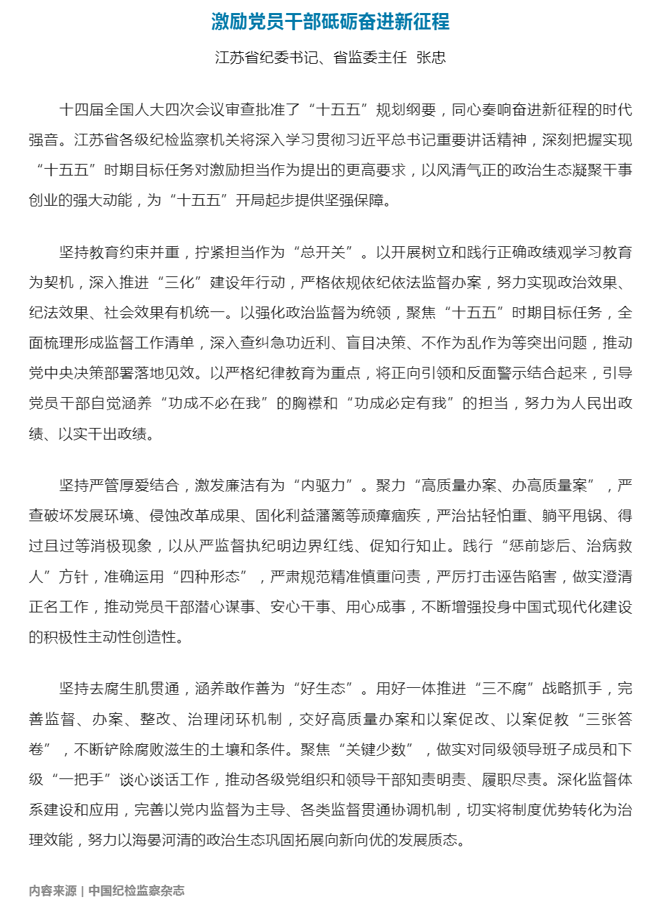 《中国纪检监察》杂志刊发张忠署名文章:激励党员干部砥砺奋进新征程