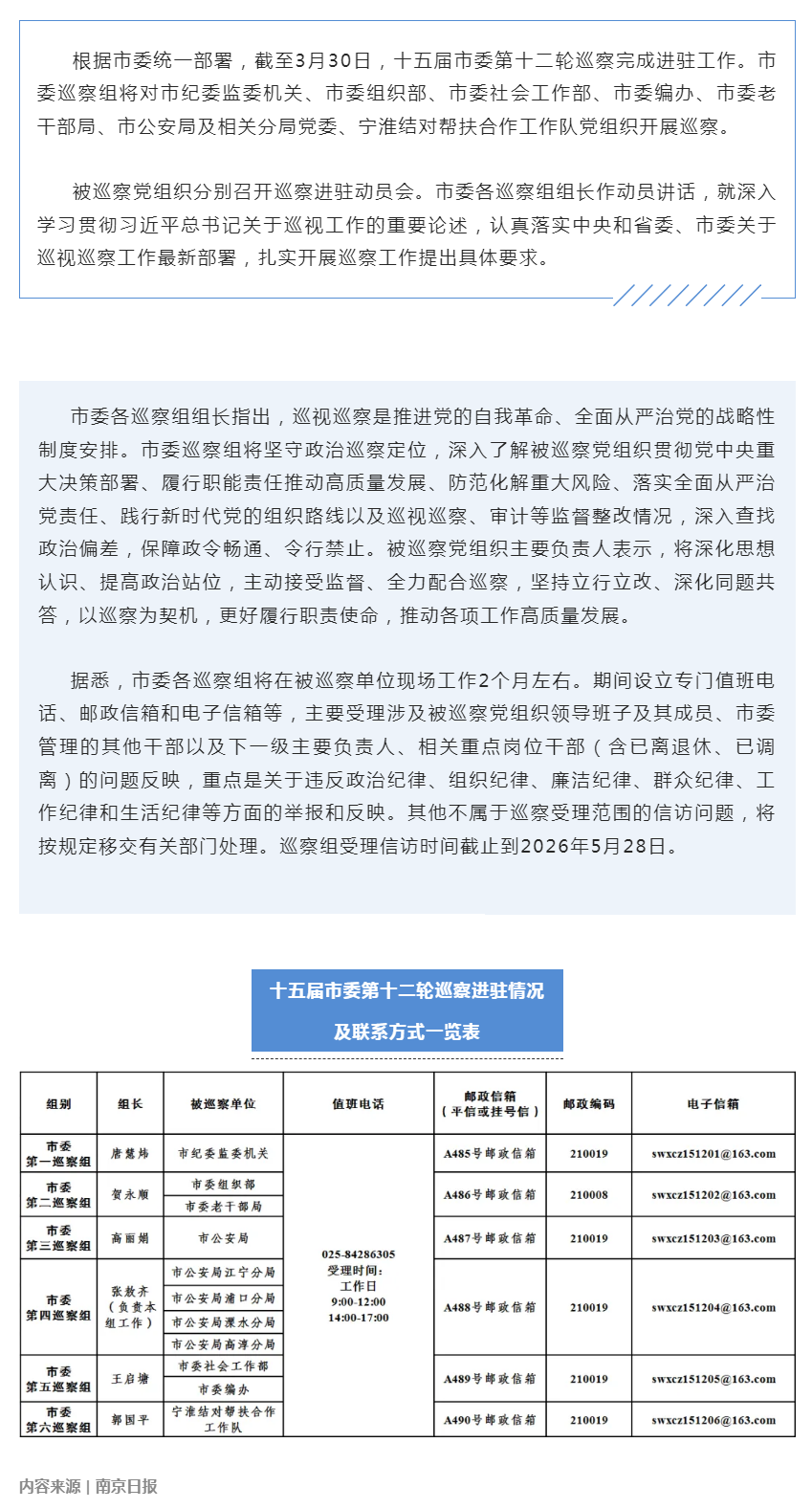 十五届市委第十二轮巡察完成进驻